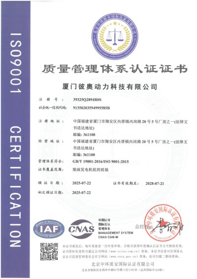 GongTai (Xiamen) New Energy Co., Ltd is joint-venture Enterprise, Trademark is Gongtai Power, Located in Xiangan Binyinu Industrial Park, Xiamen Special Economic Zone, covering an area of more than 15,000 square meters, With modern standard production workshops and office facilities, it is a manufacturer integrating design, research and development, production and sell : engines, generator sets, natural gas generator sets and fans. Below with our Cert. For your ref.
